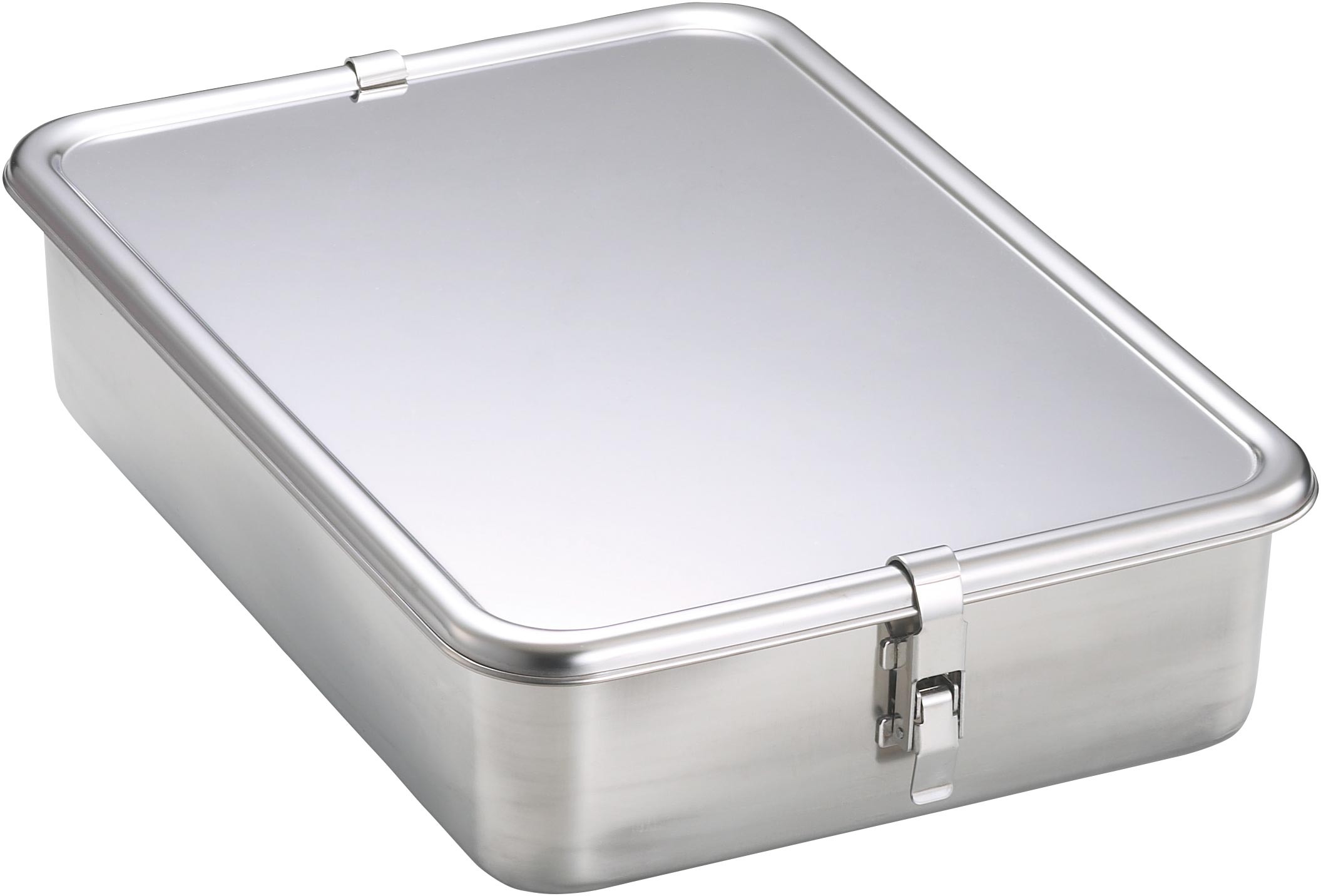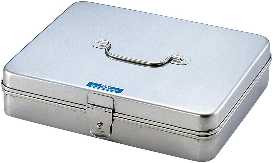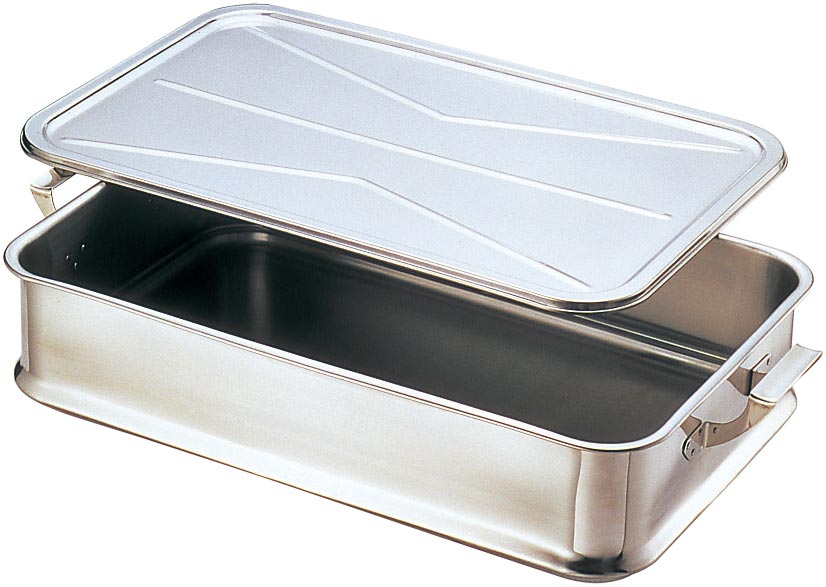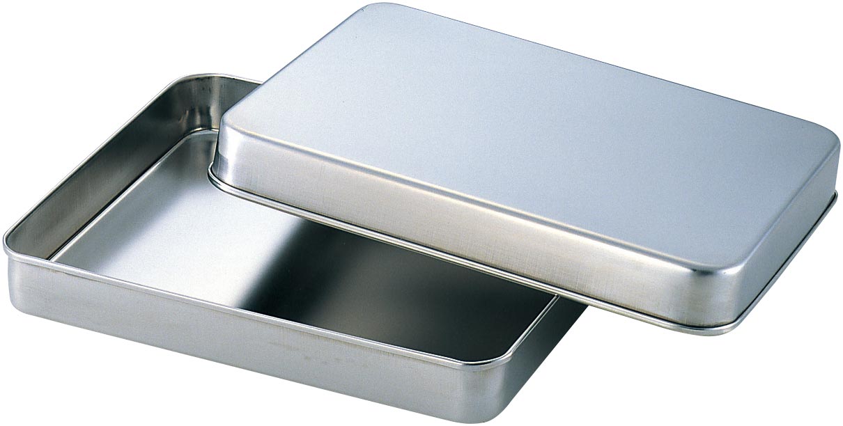 ステンレス製の蝶番蓋付バットです。(蝶番が付いていてフタの開閉が便利です)